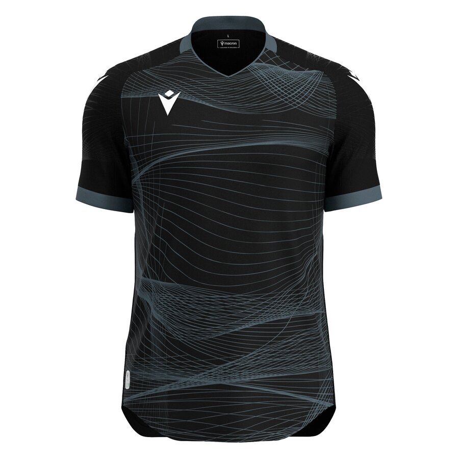 Match day shirt made entirely in Eco-Fabric, obtained from 100% recycled PET. The knitted V-neck has piping on the front. The shirt features a distinctive optical texture which is embossed on the sleeves and dye-sub printed on the front. The Macron Hero logo stands in silicone on front. The Eco-micromesh back guarantees outstanding breathability.